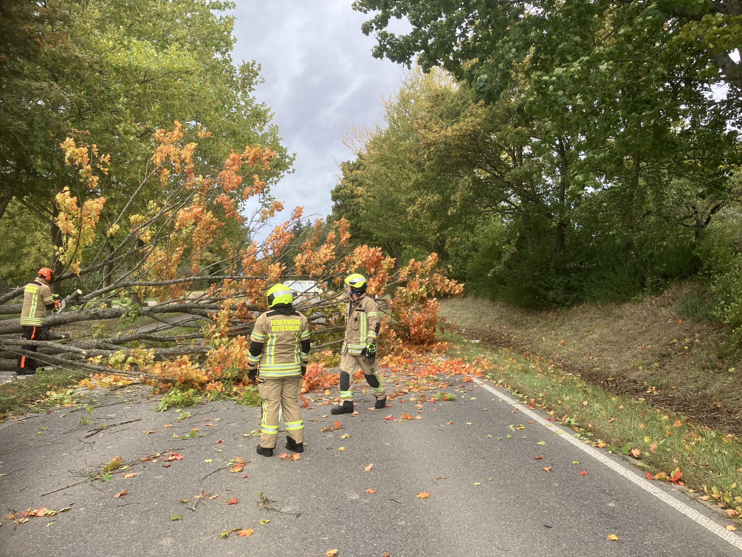 Am Samstagmittag wurde die Feuerwehr Rutesheim mit dem Alarmstichwort 1 SO auf die Kreisstraße 1017 in Richtung Flacht alarmiert. Aufgrund des starken Windes war ein Baum auf die Fahrbahn gestürzt und blockierte diese vollständig.