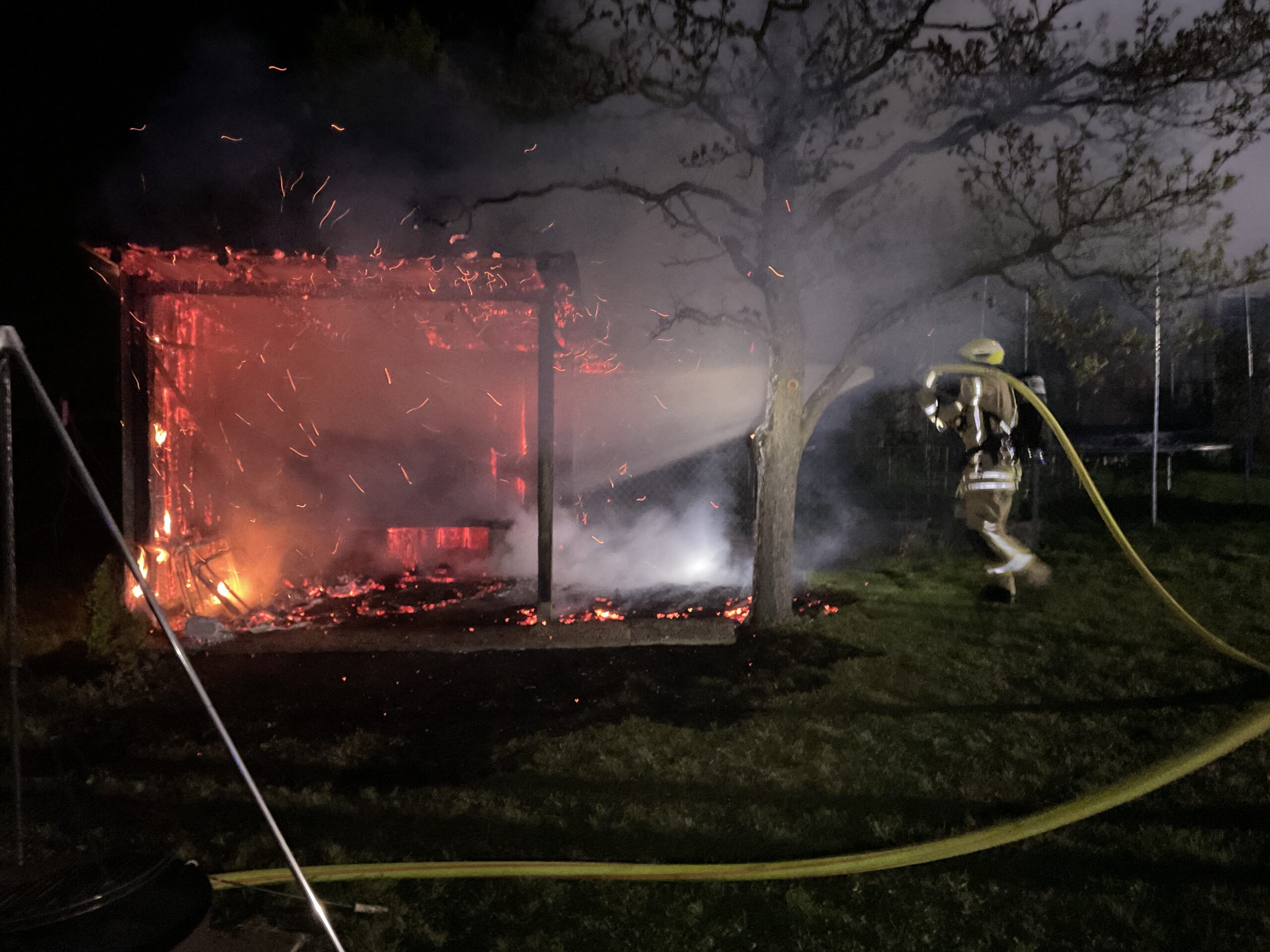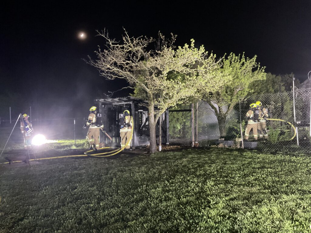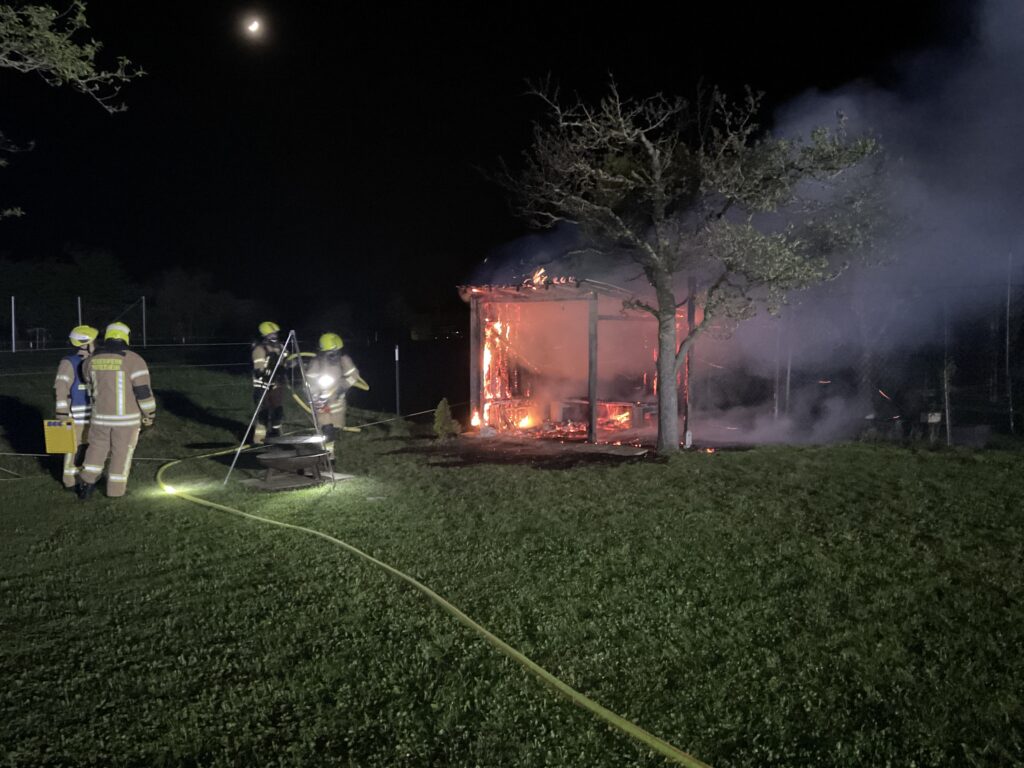 In der Nacht auf Sonntag wurde die Feuerwehr Rutesheim mit dem Alarmstichwort 2 BI DL zu einer brennenden Gartenhütte in der Nähe eines Wohngebäudes alarmiert.