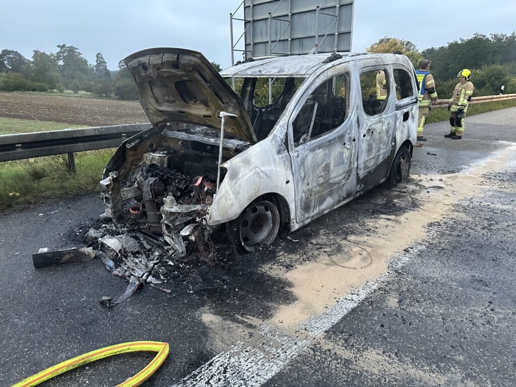 Nach Abschluss der Löscharbeiten wurde das Fahrzeug nochmals mit der Wärmebildkamera kontrolliert. Dabei konnten keine weiteren Glutnester festgestellt werden. Anschließend wurde die Einsatzstelle an die Polizei und die Autobahnmeisterei übergeben.