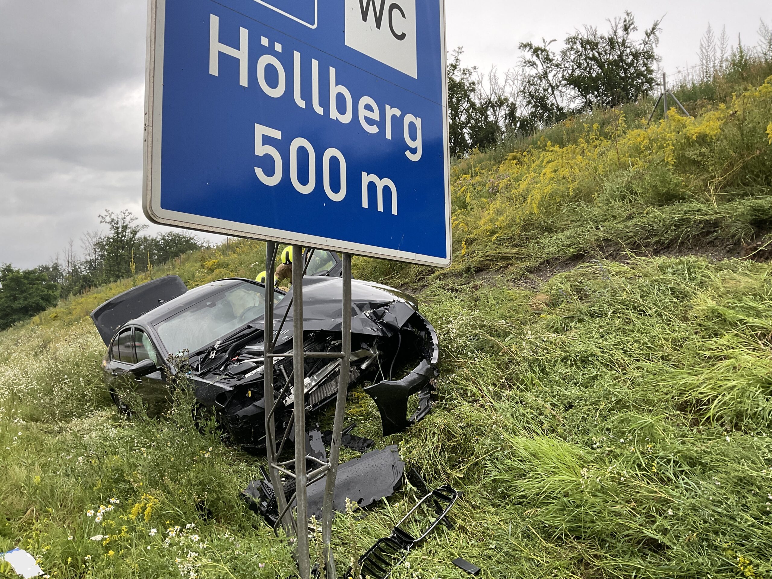 Während der Rettungsdienst eine betroffene Person betreute, sicherte die Feuerwehr die Unfallstelle gegen den fließenden Verkehr ab, stellte den Brandschutz sicher und klemmte vorsorglich die Fahrzeugbatterie ab.