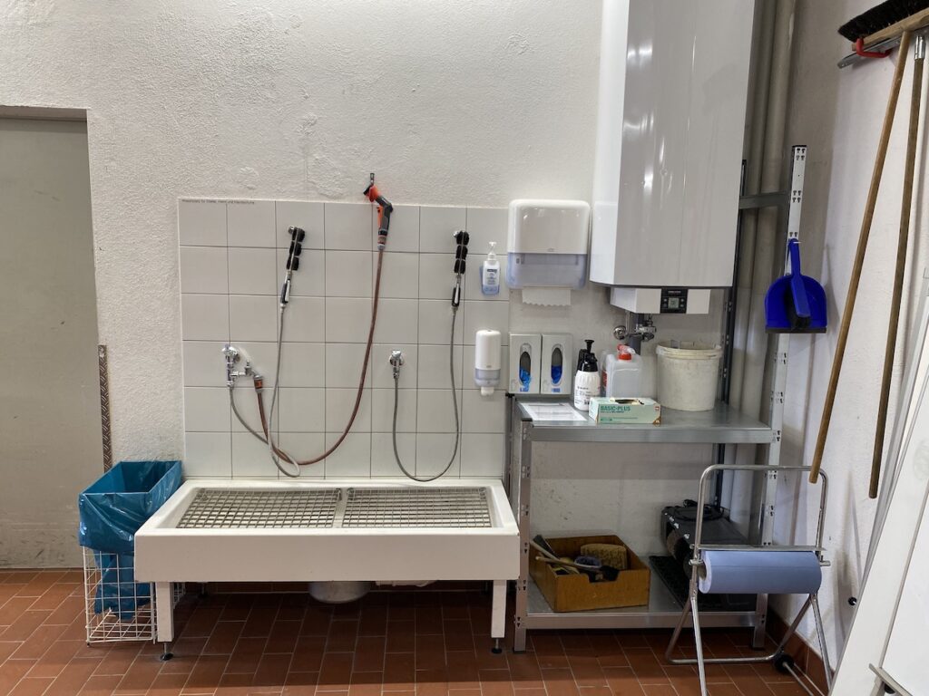 Eine weitere Verbesserung im Feuerwehrhaus betraf die grobe Reinigung nach dem Einsatz für Stiefel, Helme und Handschuhe. Hier wurde der bisherige Waschplatz entsprechend aufgewertet und neu organsiert. Auch die Duschsituation für die Feuerwehrangehörigen wurde ertüchtigt. Alle Kameraden/innen können so eine Verschleppung von Gefahrstoffen bis in die eigenen vier Wände und der Familie vermeiden. Entsprechende frische Wechselkleidung und Duschutensilien kann in bereitgestellten geschlossenen Plastikboxen auf dem persönlichen Spind gelagert werden.