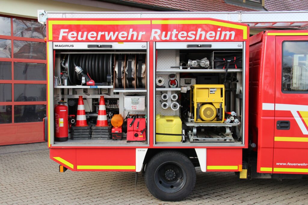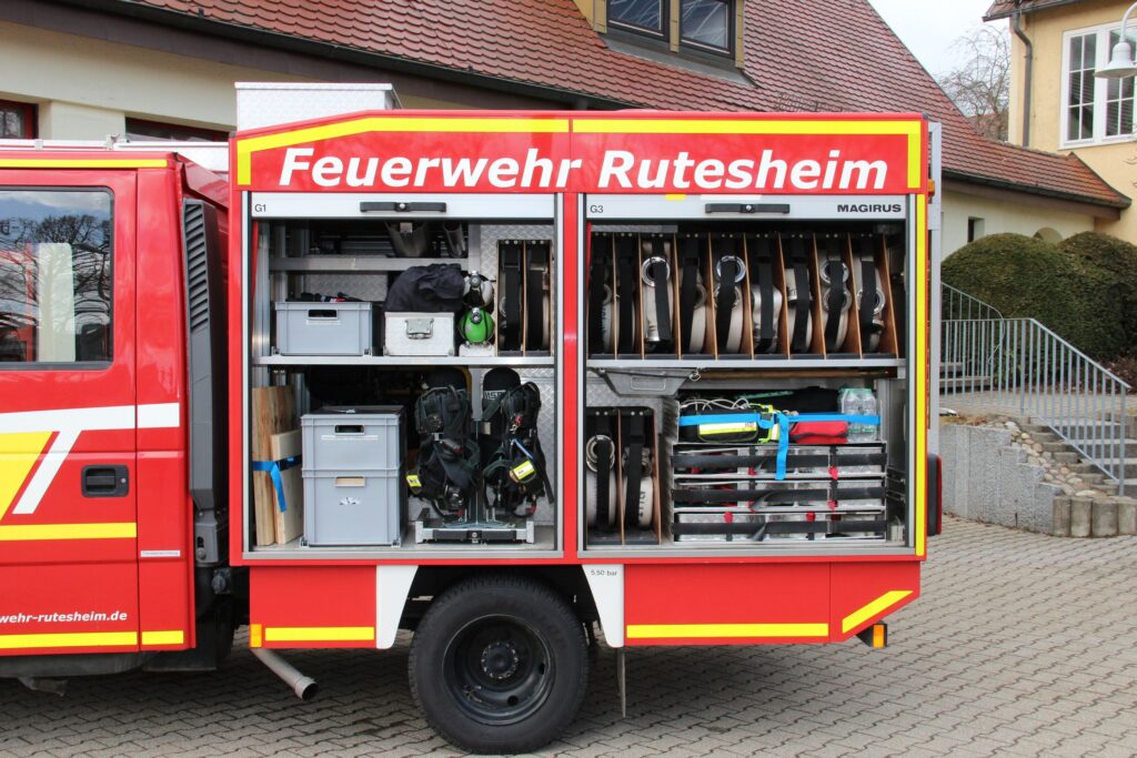 Beladung:Schläuche / Schnellangriff / Stromerzeuger / 4-teilige Steckleiter / Atemschutzgeräte / Verkehrsabsicherung